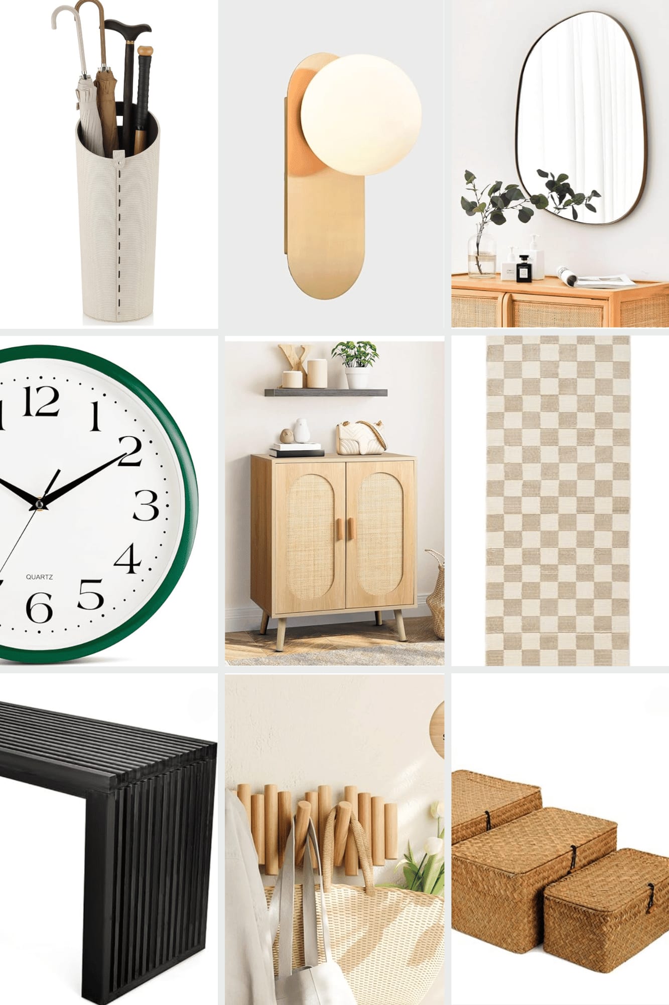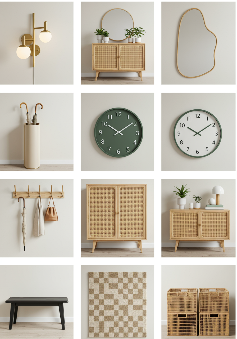 A stylish clock serves both form and function. Not only does it keep you on time as you head out the door, but it can also act as a design element that complements the overall look of your entryway. Choose a modern or classic piece depending on your style.